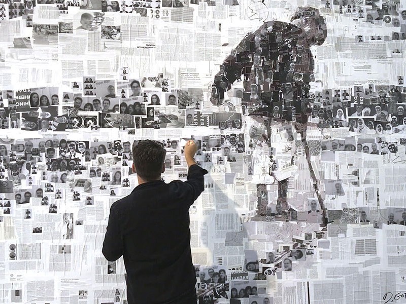 Solution Studio concept Imagine You e ideazione di uno stand e di una iniziativa di grande impatto. Collaborazione con un importante artista contemporaneo per la realizzazione di un'opera composta dalle foto scattate ai radiologi presenti allo stand.